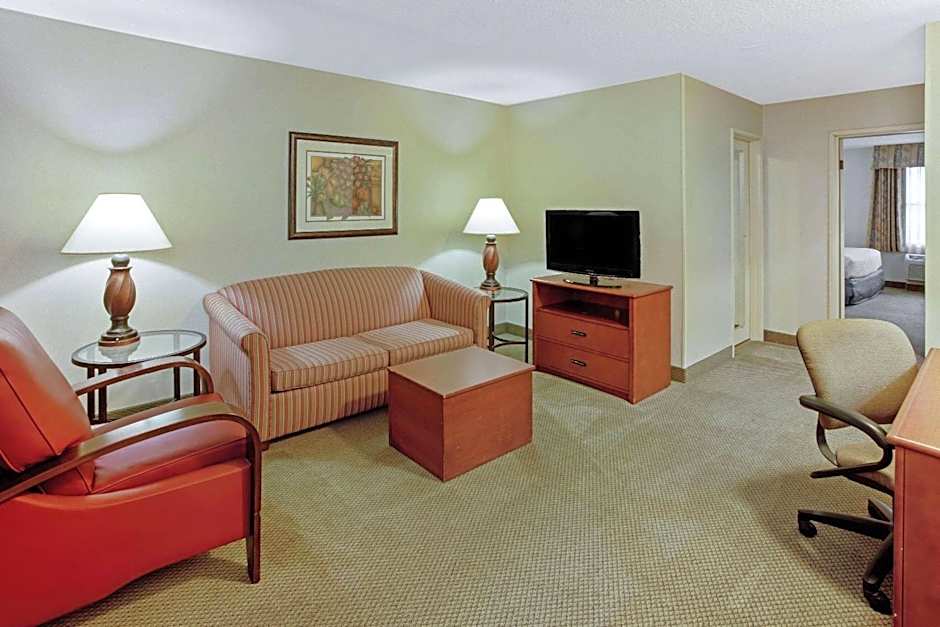 This spacious suite features a separate living room area with a sofa bed.
