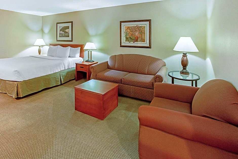 This spacious suite features a living room area with a sofa bed.